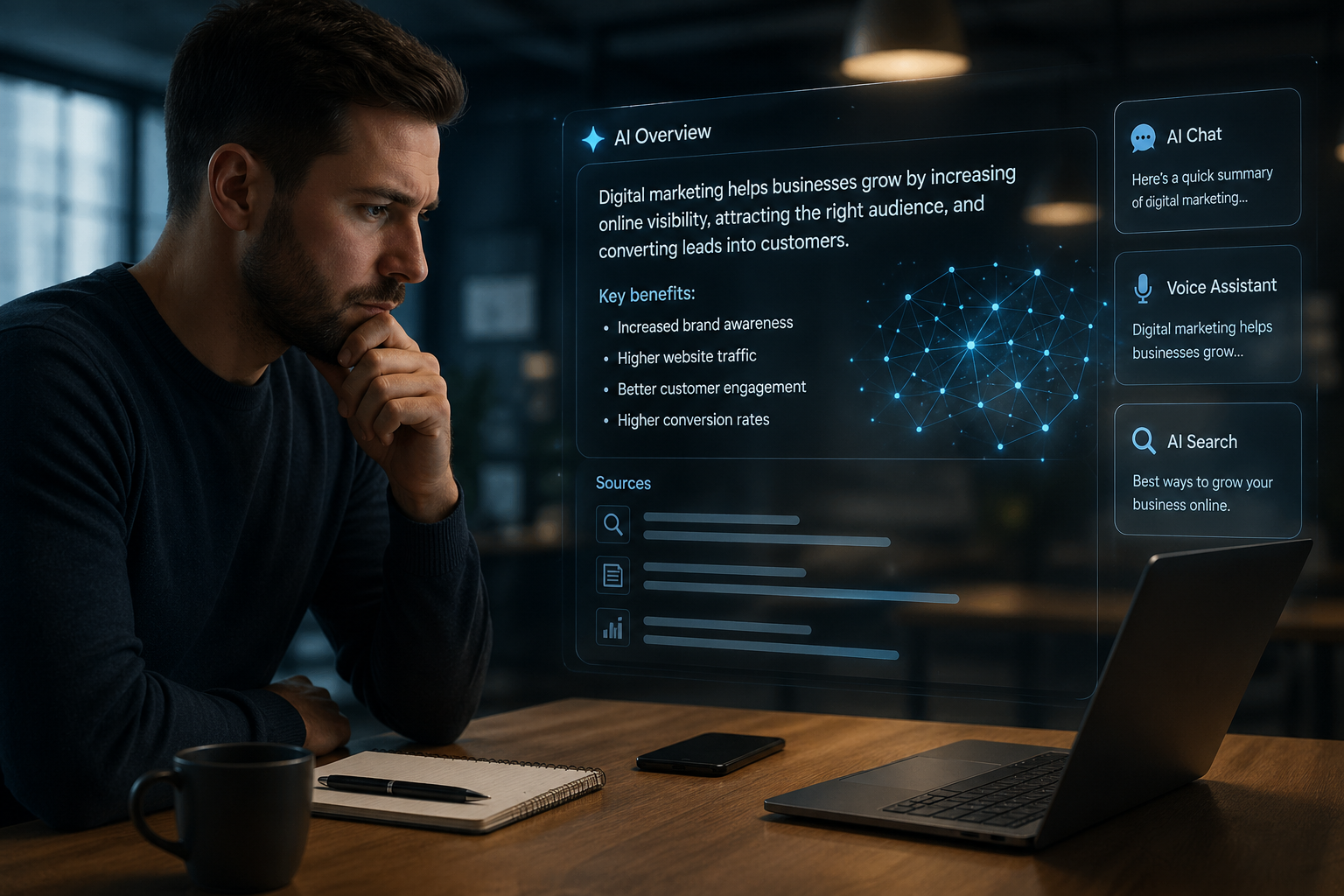 Yes — significantly. AI Overviews appear for nearly 48% of searches in categories like health, finance, and B2B technology. If you're in construction, healthcare, professional services, industrial manufacturing, or any B2B space, your prospective customers are almost certainly using AI to research their options before they ever contact a vendor. Being absent from those AI-generated answers means being absent from the top of your customers' consideration set.